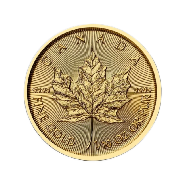 On the obverse it shows the typical Canadian Maple Leaf and on the reverse the bust of Queen Elizabeth II. The diameter of the Maple Leaf gold ounce is, by the way, a bit smaller compared to other investment coins. The denomination of the coins is in Canadian dollars, which, however, like other investment coins, are affected by the value of gold.